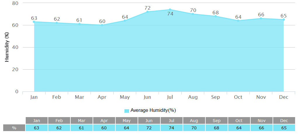 Warmest Month: August: 26 - 32 ℃ (78.8 - 89.6℉)