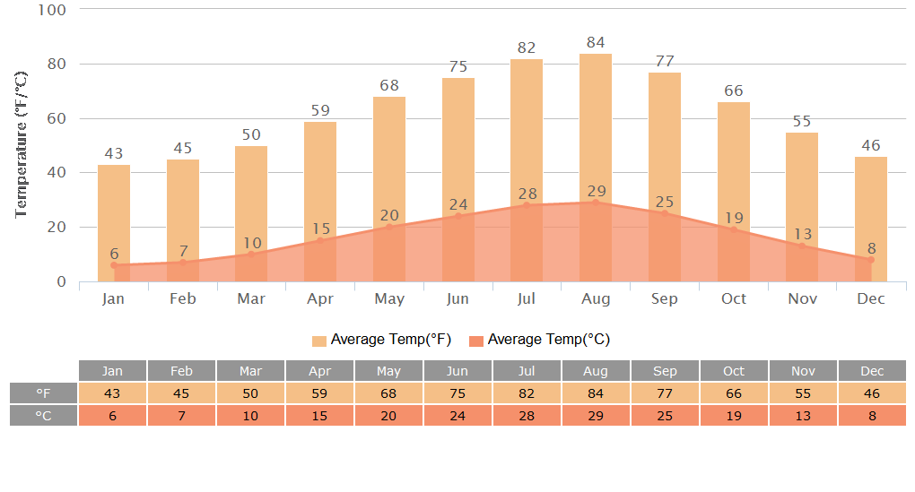 Average Temperature: 13 - 20℃ (55.4 - 68℉)