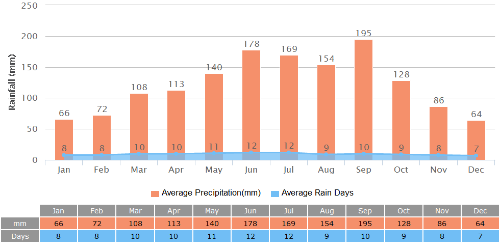 The rainy season will last for one month or one and a half months in Japan, generally from May to July. The rainy season begins in the southern islands of Japan in early May or mid-May; the farther north you go, the later the rainy season comes. To the northeast of Honshu, the rainy season comes in early or mid-June. As for Hokkaido, it is relatively an exception in Japan with no rainy season. During the rainy season, there will be extremely frequent rains, though some of which are showers. The high rainfall during this period, on the other hand, also leads to high humidity.
