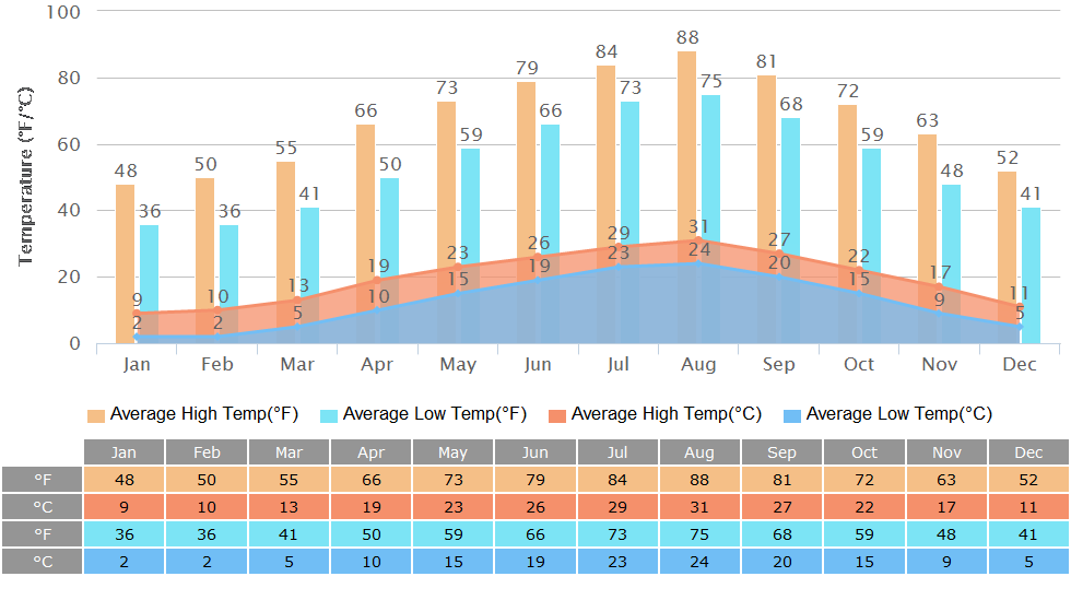 Generally speaking, August is the hottest month in Japan. Except the northern Hokkaido maintains a comfortable daytime temperature of around 25°C (77°F) during this period, most other regions see daytime highs rise above 30°C (85°F). In some areas, you may even experience a high of over 35°C (95°F).Precipitation