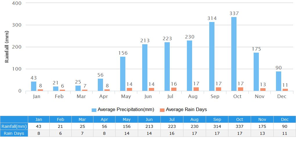 In summer, from June to August, temperatures can reach nearly 40℃ (104℉) and typhoons begin to occur. In the hottest afternoons, coupled with the high humidity, makes you feel like in a sauna room and forces you to stay in an air-conditioned room.